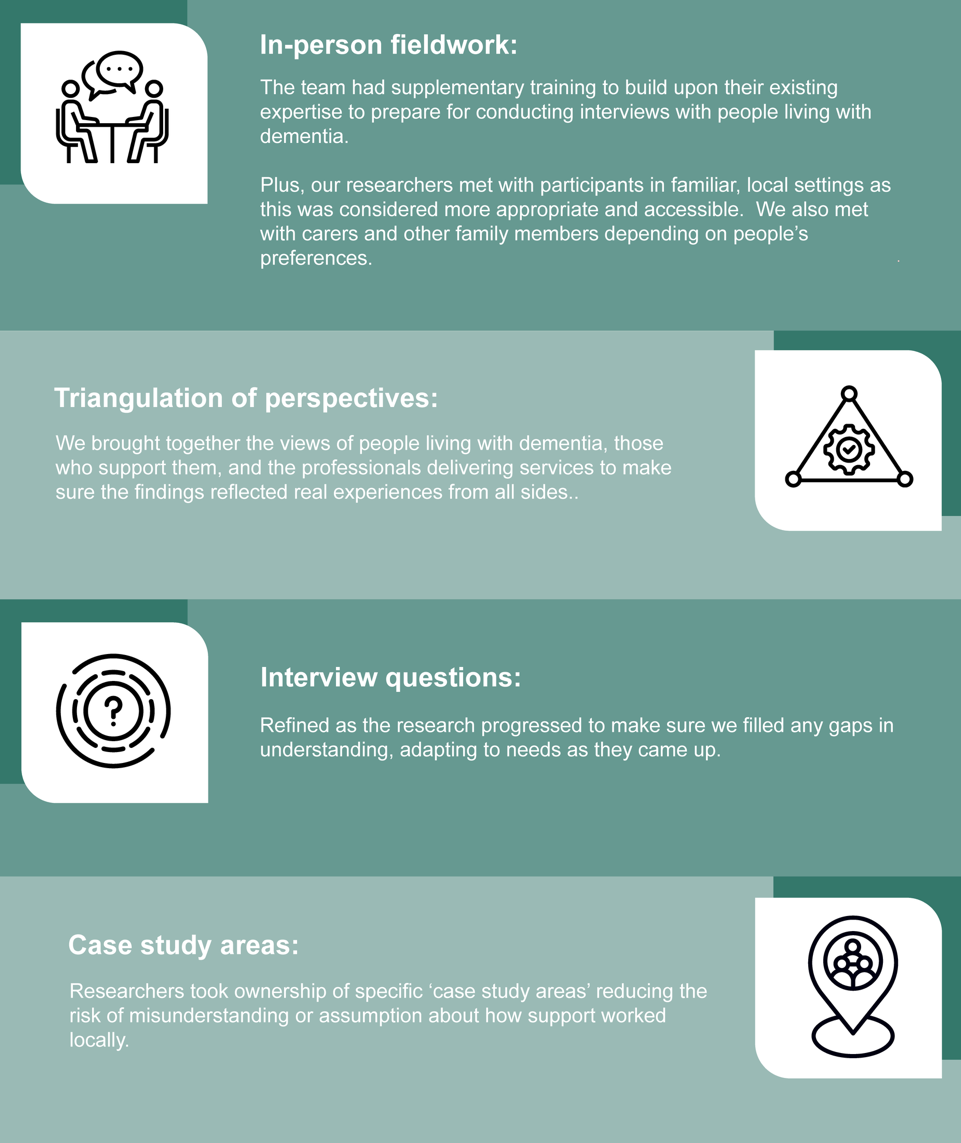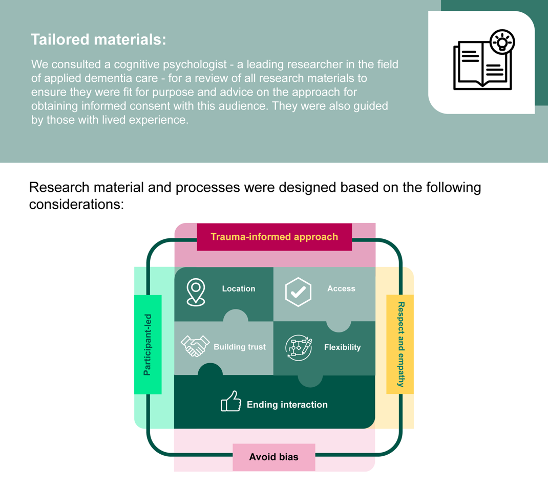 As dementia can affect how people process and engage with information, we wanted to make sure that our approach was carefully considered:
