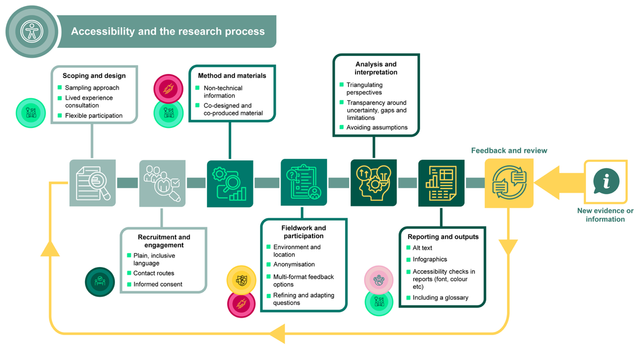 Accessible research is essential in ensuring that people are able to participate fully, regardless of their background or circumstances. This includes physical, systematic, behavioural and environmental barriers.