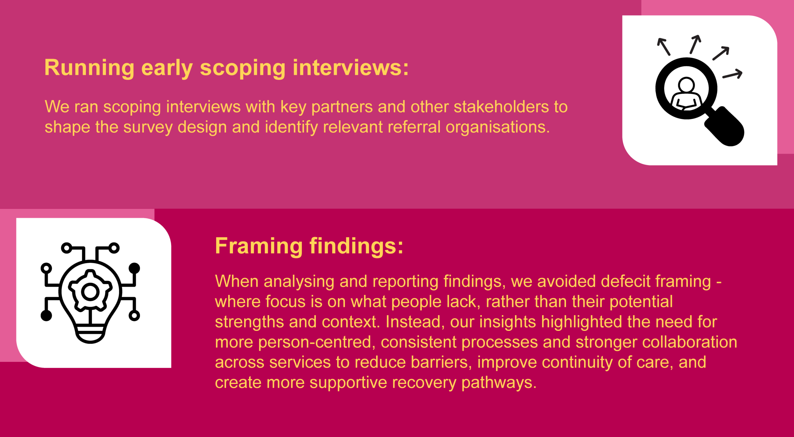 Next, we’ll explore our expertise in making research accessible to ensure underrepresented audiences can engage effectively, removing barriers that might exclude people with lived experience, language differences, or additional needs.
